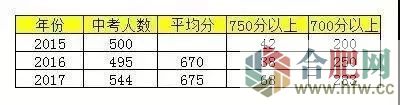 今年共有494人參加中考,平均分678分,770分以上25人,750分以上95人,占參考人數19.2%,(合肥市比例為10.7%),700分以上265人,占參考人數53.6%(合肥市比例為39.5%),統招人數預估在35人左右,普高達線率為92.6%。